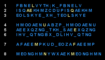 Going back to "the screen", it became obvious to me that each line was a repeated set of characters. A few blanks just needed to be filled in. Enough talk - let's fill in the blanks.