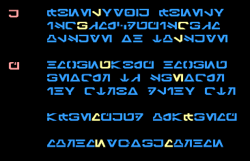 There are a few places where the pattern doesn't have enough room to repeat itself, so a few blanks remain. But we can generally extract the complete set of characters from each line. Here's the Aurebesh version, with the "missing" letters in yellow:
