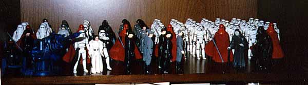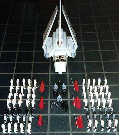 This diorama is my pride and joy. The scene is the Emperor's arrival in Return of the Jedi. Since I had recently made my Vintage Grand Moff Tarkin figure, I decided to throw him in as well behind the Emperor and Vader.